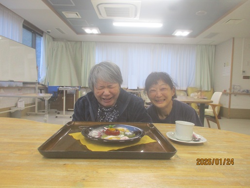 写真を撮られるのが苦手なT様 職員が笑顔の写真を撮ろうと