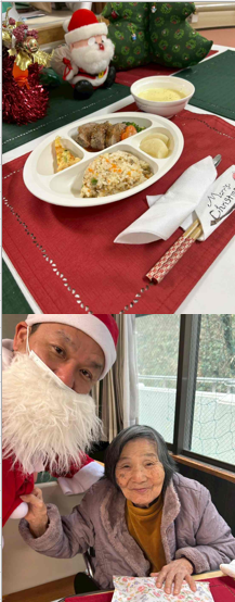 昼食は、調理係特製クリスマスランチです。いつもと違うお食事に食が進まれていました。