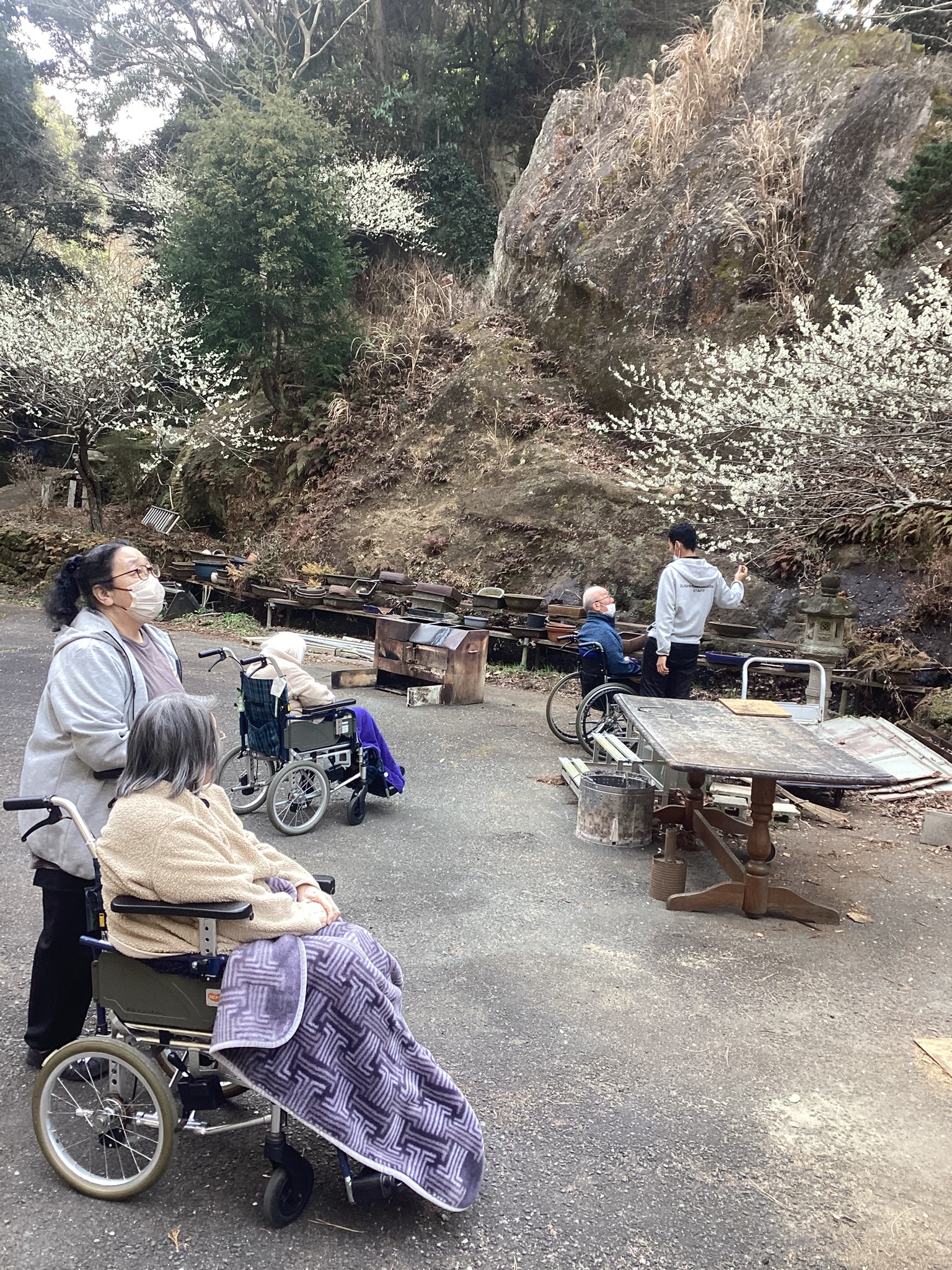 お散歩に行ってみました。まだ寒いですが、それぞれお散歩やお庭の景色を