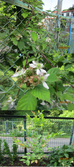 施設前のフェンス伝いに「キイチゴ」が小さな可愛い花を